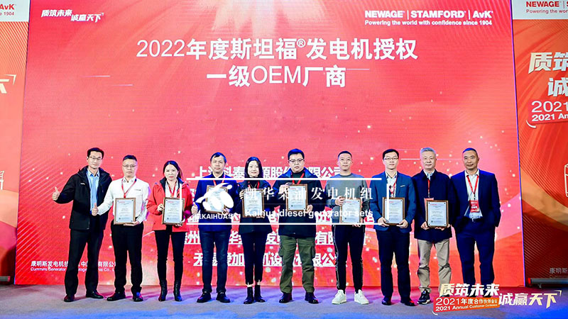 凯华柴油发电机组有限公司在贵阳安纳塔拉度假酒店参加康明斯发电机技术2021年度合作伙伴会议,我司作为STAMFORD®发电机一级OEM厂商荣获康明斯发电机最佳业务拓展奖项。在这一年里,凯华和康明斯克服苦难,协同一心,取得了新的辉煌。希望在数字化转型的新动能下,共赢智慧未来! Cummins Generator Technologies 成立于 1904年,以著名的 NEWAGE®、STAMFORD® 制造交流发电机和 AvK® 品牌树立行业标准,从 7.5 到 11kVA,适用于所有发电机组配置。